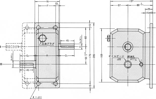d1 | b1×t1 | Q1 | d2 | b2×t2 | Q2 | R | QL | N | F | - | 油量 l |