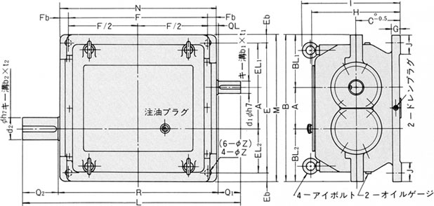 | 型式 | F | Fb | Z | J | L | R | d1 | b1 | t1 | Q1 | d2 | b2 | t2 | Q2 | QL |